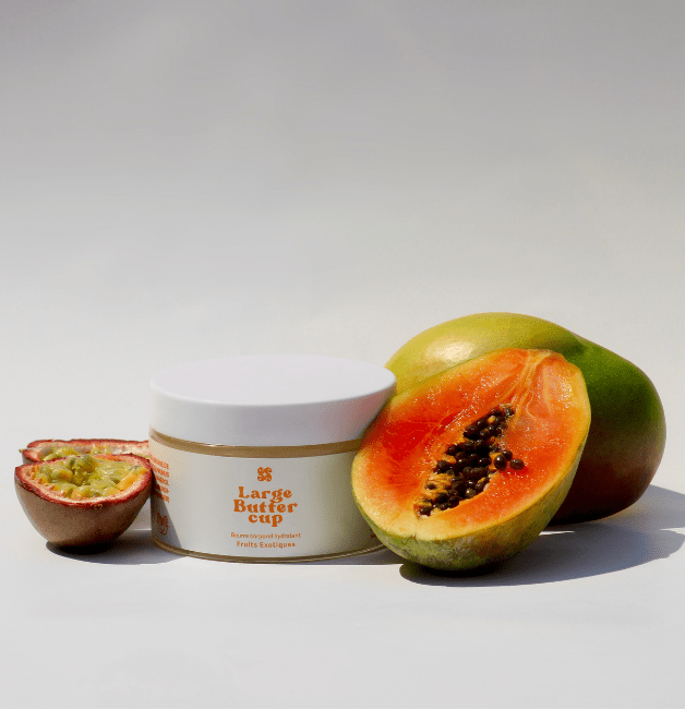 Nos produits sont disponibles en deux formats pratiques : Large (200g) et Mini (50g), afin que vous puissiez emporter votre beurre corporel partout où vous allez.